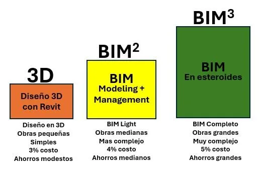 BIM es el acrónimo de “Building Information Modelling”, una metodología operativa que incorpora información geométrica (3D), de tiempos (4D), costos (5D), medio ambientales (6D), y mantenimiento (7D).